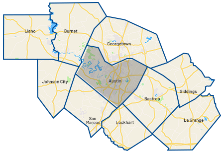 We serve 9 counties around the Austin, TX capital area including Bastrop, Blanco, Burnet, Caldwell, Fayette, Hays, Lee, Llano, and Williamson counties.