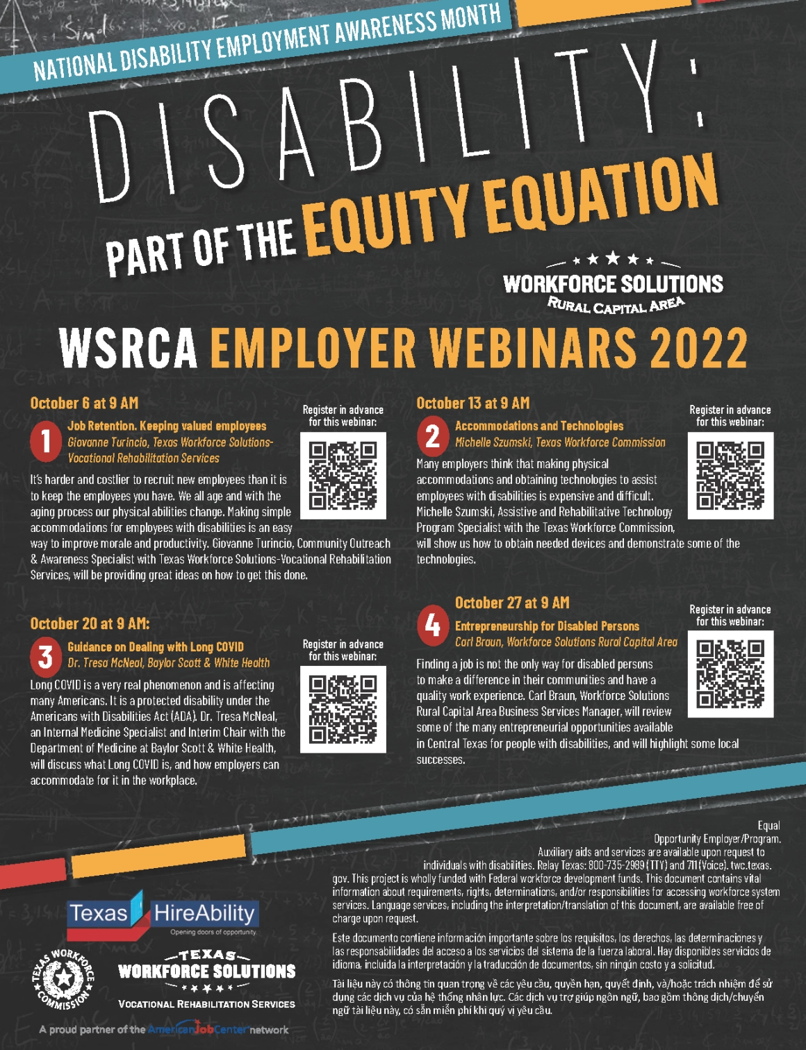 Disability: Part of the Equity Equation! Register to Participate in Free National Disability Employment Awareness Month Webinars